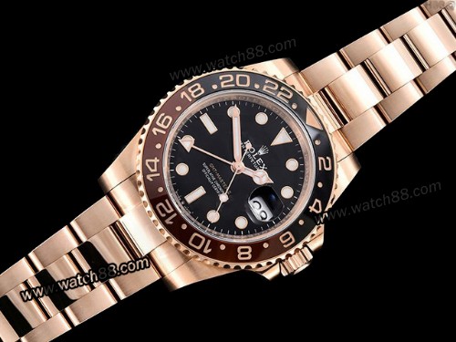 Movement:VR3186 Automatic GMT movement with decorated bridges rotor with correct hand stack (Hour Hand Adjustable)-Functions 1:1 like the Genuine Rolex Calibre 3186